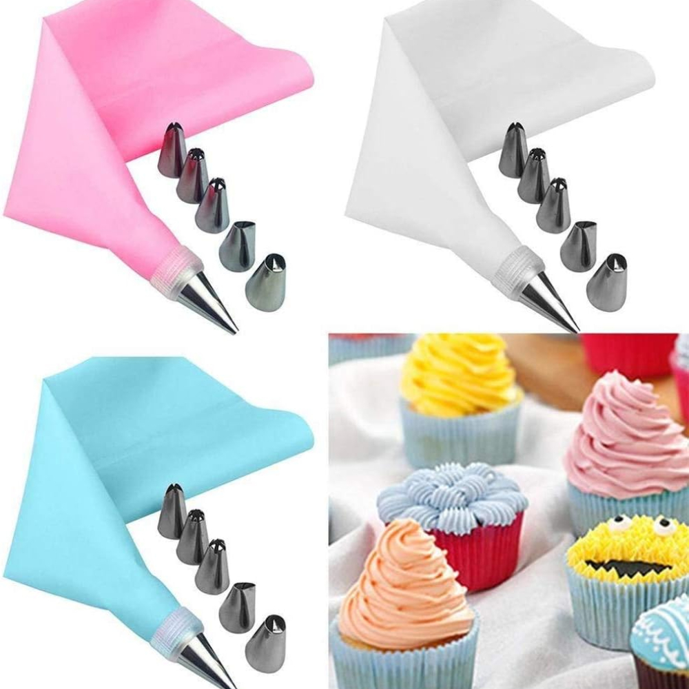 - Conjunto De Ferramentas Perfeitas e Indispensáveis - Muito Adequado Para Personalizar a Decoração De Bolos, Cupcakes, Tortas, Biscuit, Cookies, Sobremesas Diversas. *Informação Do Produto: 8Pçs - 1 Saco Confeiteiro + 6 Bicos Inox + 1 Peça de encaixe dos bicos - Composição: Inox e Plástico - Material Das Pontas: Aço Inoxidável 7Pçs - 1 Saco Confeiteiro + 3 Bicos Inox + 1 Pincel Silicone + 1 Espátula Silicone+ 1 Peça de encaixe dos bicos - Composição: Plástico + Inox 7Pçs - 1 Bisnaga Confeiteiro + 6 Bicos Plástico - Composição: Plástico + Inox Características: - Reutilizável e Durável. - 100% Novo e De Alta Qualidade - Indicados Para Glace Ou Chantilly, Decoração De Bolos, Para Dar Textura Aos Bolos Decorados. - Fácil De Manusear e De Fácil Limpeza.