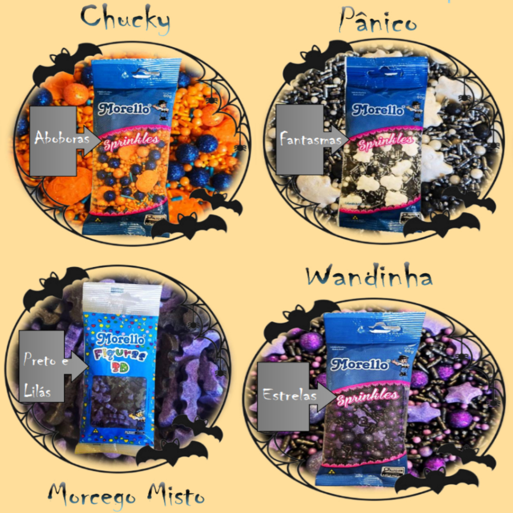 CONFEITO DE AÇÚCAR SPRINKLES DIVERSOS MODELOS E CORES 60GR E FIGURAS 3D 40GR HALLOWENNN A SUA ESCOLHA MORELLO