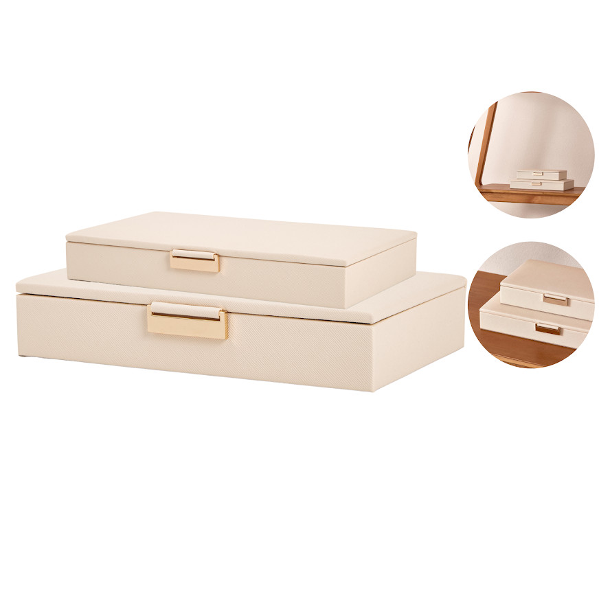 Conj 2 Caixas Decorativa Organizadora Porta Joias Objetos Multiuso Alça Metálica Dourada Sofisticada