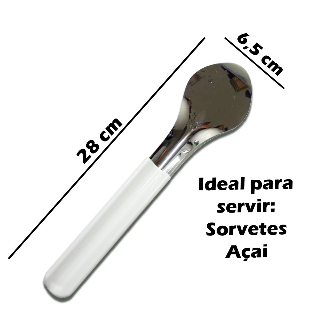 CONJ 3 ESPÁTULA PARA SORVETE ITALIANO AÇAI INOX 26 cm CABO BRANCO