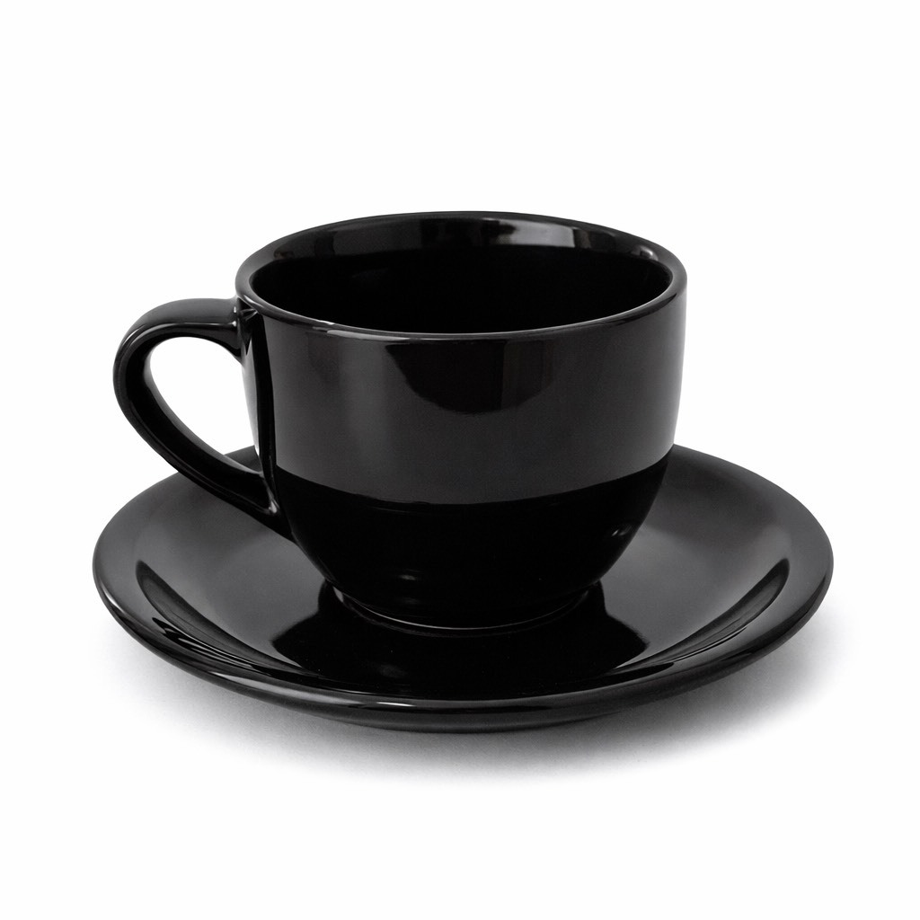 Conj 6 Xícaras de Café 90ml Com Pires Preto Porcelana