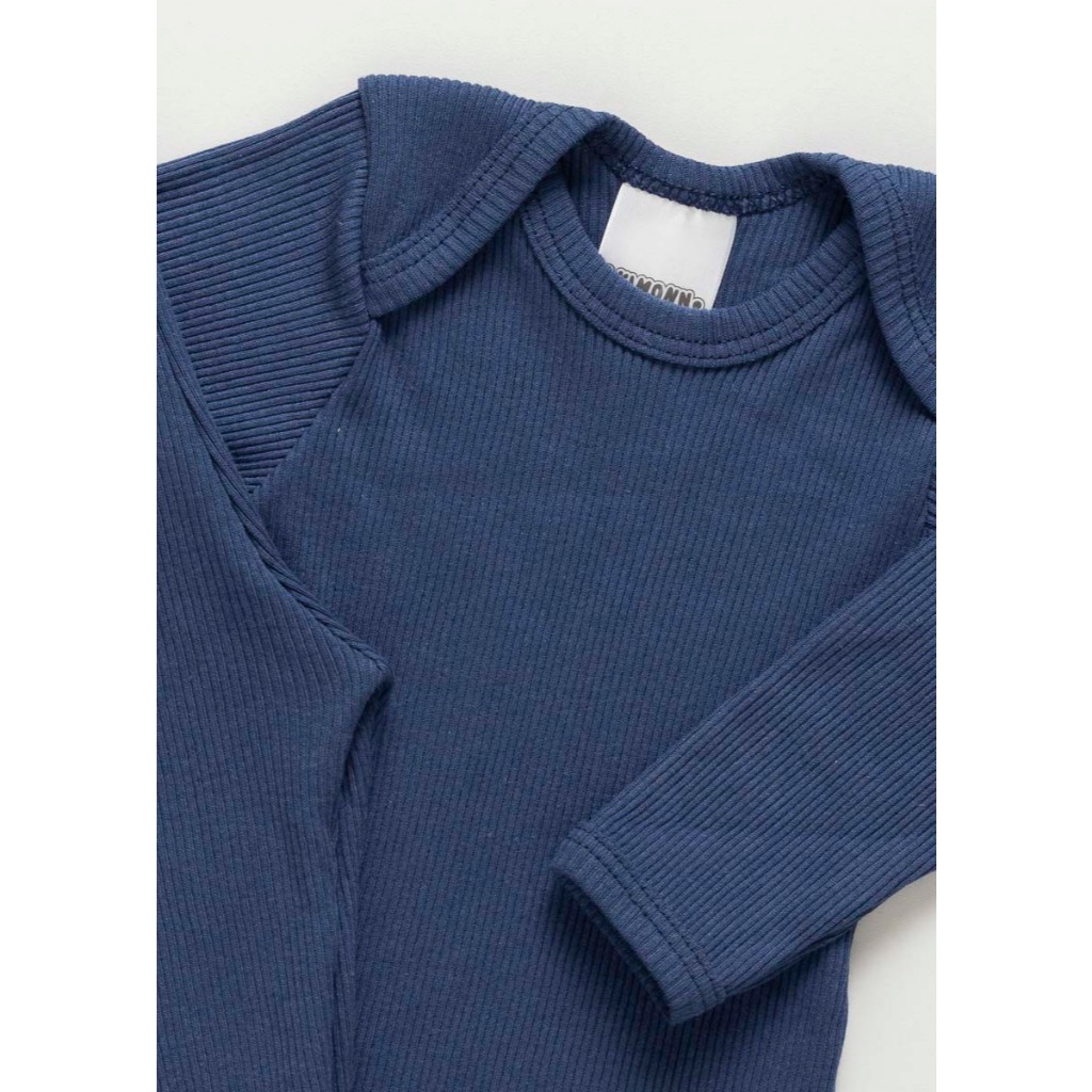 Conj Body e Calça Bebê Antialérgico Pagão Canelado Longo Azul Marinho 100% Algodão