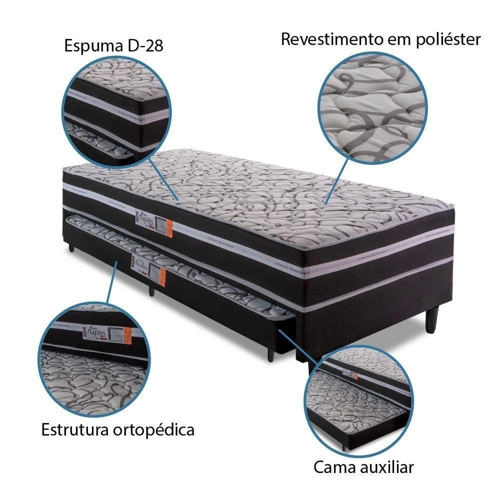 Conjugado Box Hellen Aspen 88x188x41cm com Auxiliar Cinza/Branco/Floral Conjugado ortopédico Aspen da Hellen, e o conjunto ideal para quem precisa de um colchão extra. Sua estrutura ortopédica garante ao produto um nível de conforto extra firme com colchão conjugado e cama auxiliar em espuma D-28 certificada pelo INMETRO. Sua estrutura e feita em 100 eucalipto com tampo em compensado de 4 mm, o revestimento em poliéster garante a beleza do móvel. Conjugado Box Hellen Aspen, o produto perfeito para quem busca conforto e praticidade na hora de dormir, e uma ótima opção para quartos de solteiro e ate mesmo de hospedes. Especificações Técnicas: - Revestimento Tampo Superior: Tecido poliéster + Espuma D20 1 cm Matelassê - Revestimento Faixa Lateral: Poliéster 92 g/ M2 + Espuma D20 Matelassê - Revestimento Lateral: 100 Poliéster - Revestimento Fundo: TNT Polipropileno - Espuma: D28 5 cm - Suporte: Estrutura de Madeira 100 Eucalipto - Suporte : Ate 90 kg - Pés: Pvc 12 cm - Altura Conjugado: 41 cm - Altura Cama Auxiliar: 12 cm - Garantia: 12 meses Dimensões - Altura: 41 cm - Largura: 88 cm - Profundidade: 188 cm - Peso: 38,2 kg