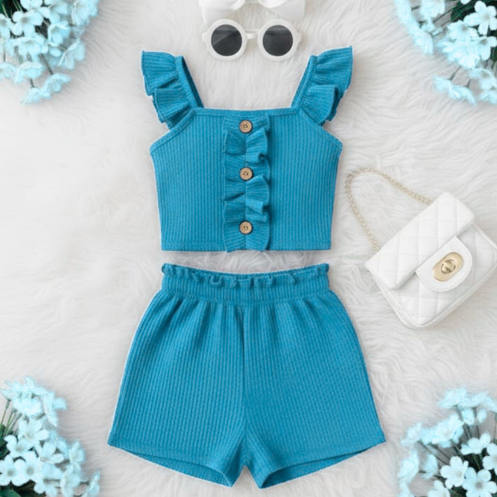 ✨ O Conjunto Perfeito para Brilhar! ✨ Prepare-se para se apaixonar! Este não é apenas um conjunto, é a garantia de um visual fresquinho, charmoso e absolutamente estiloso para sua pequena. Ideal para passeios, festas ou simplesmente para brincar com muito conforto. 🌟 Por que você vai querer levá-lo para casa hoje: Toque de Conforto Premium: Confeccionado no desejado tecido canelado de alta qualidade, ele é fresquinho e macio, proporcionando liberdade total de movimento para os dias de sol. 📏 Guia de Tamanhos Tamanho P: Corresponde à idade de 2 anos. Tamanho M: Corresponde à idade de 4 anos. Tamanho G: Corresponde à idade de 6 anos. Tamanho GG: Corresponde à idade de 8 anos.