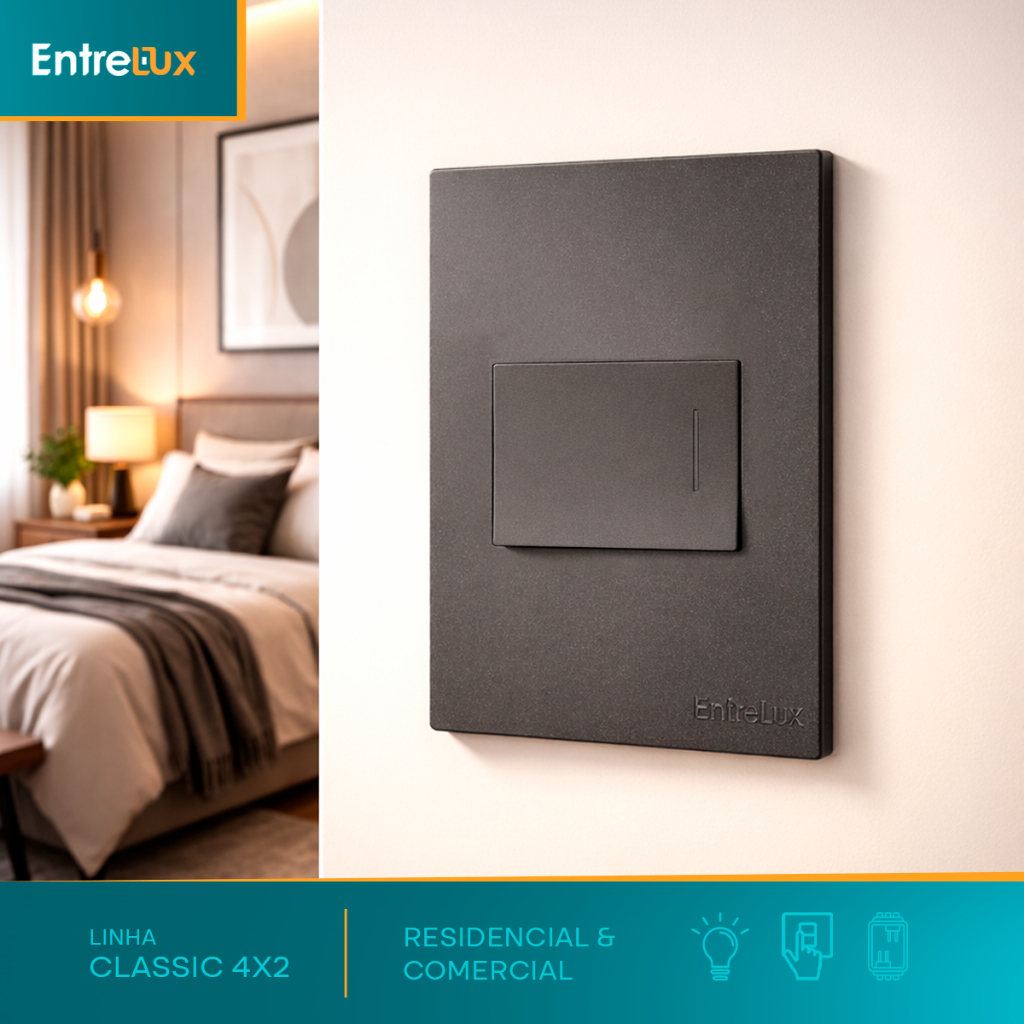 CONJUNO 1 INTERRUPTOR SIMPLES 4X2 10A LINHA CLASSIC - ENTRELUX Conteúdo desta Compra: 01 Interruptor Simples 10A Marca: Entrelux Linha: Classic Modelo: 4x2 Cores: Preta, Cinza, Grafite e Branco. Apresentamos o Interruptor Simples Entrelux 10A Conjuntos 4x2, a solução ideal para quem busca eficiência e praticidade em suas instalações elétricas. Com um design moderno e funcional, este interruptor de alavanca é perfeito para ambientes residenciais e comerciais, garantindo um controle seguro e confiável da iluminação. Fabricado pela renomada marca Entrelux, este modelo apresenta uma corrente nominal de 10A e uma voltagem de 250V, assegurando um desempenho robusto e duradouro. Seu corpo em plástico proporciona resistência e leveza, enquanto suas dimensões compactas de 12 mm de altura e 8,3 mm de largura facilitam a adaptação em diferentes espaços. Tipo Paralelo: permite acionar a iluminação de um mesmo ponto de luz a partir de dois locais diferentes. Tipo Simples: É indicado para ligar e desligar a iluminação de um único ponto. Características Técnicas Modelo: 4x2 Amperagem: 10A Tensão: 110V / 250V Material: Termoplástico Dimensões: 12 x 8,3 (cm) Se tiver alguma dúvida extra entre em contato conosco. Temos uma equipe especializada para ajudá-lo. Atenção: Preço Unitário. PRODUTO A PRONTA-ENTREGA PARA ENVIO IMEDIATO!!!