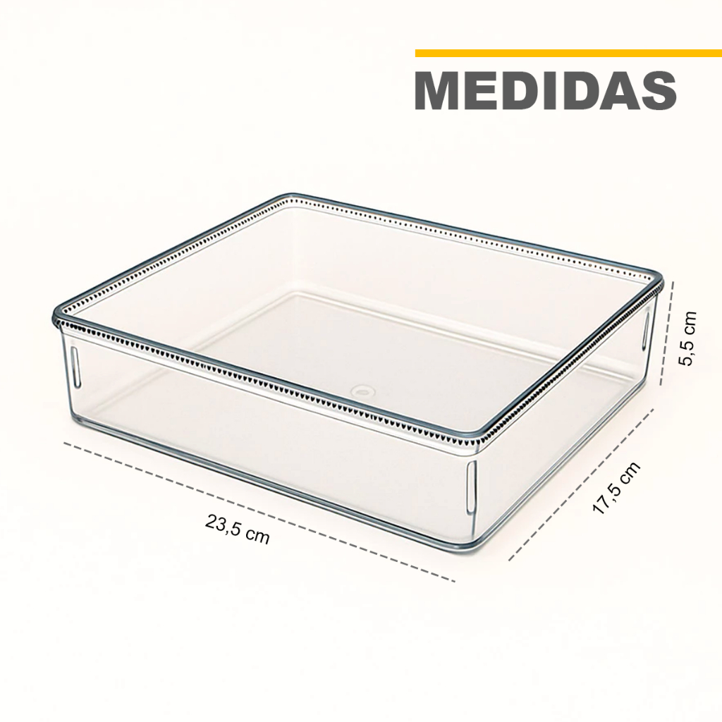 🧊 Kit 10 Cestos Organizadores de Acrílico Cristal – Praticidade, Estilo e Organização em um só produto! Mantenha seus espaços sempre organizados com este kit versátil de cestos organizadores. Ideal para geladeiras, gavetas, bancadas, penteadeiras e até escritórios, os cestos em acrílico cristal facilitam a visualização dos itens e oferecem um toque moderno ao seu ambiente. 📦 O Kit Contém: 4 cestos pequenos: 8,7 x 11,7 x 5,5 cm 4 cestos médios: 8,7 x 23,7 x 5,5 cm 2 cestos grandes: 17,5 x 23,4 x 5,5 cm 🔹 Material: Acrílico Cristal Transparente 🔹 Cor: Transparente 🔹 Quantidade: 10 unidades ✅ Benefícios: Organização prática e visualmente limpa Ideal para alimentos, maquiagens, talheres, itens de escritório, cosméticos e mais Material durável e resistente ao uso diário Transparência que facilita a identificação dos itens Fácil de lavar e higienizar ❓Perguntas Frequentes: 1. Os cestos podem ser usados na geladeira? 👉 Sim! São ideais para organização interna de geladeiras. 2. Qual o material? 👉 Acrílico cristal de alta qualidade, resistente e transparente. 3. Posso usar para organizar maquiagem ou bijuterias? 👉 Sim! O kit é multiuso e ideal para diversos ambientes.