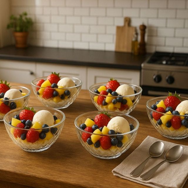 Kit 6 Peças ou 12 Peças Bowl de Vidro 350ml Ideal para servir sobremesas, petiscos, cereais ou acompanhamentos, o bowl de vidro é uma opção prática, elegante e versátil para o dia a dia. Feito em vidro resistente, oferece durabilidade e fácil higienização, além de valorizar a apresentação dos alimentos à mesa. Perfeito para: Serviço individual de porções Utilização em eventos, jantares ou refeições diárias Organização de ingredientes durante o preparo de receitas Medidas aproximadas: Capacidade: 350ml Diâmetro: 12cm Altura: 5,5cm Disponível em kits com 6 ou 12 unidades, para melhor atender às suas necessidades. Imagens e vídeos são meramente ilustrativos. A tonalidade da cor pode variar conforme o monitor.