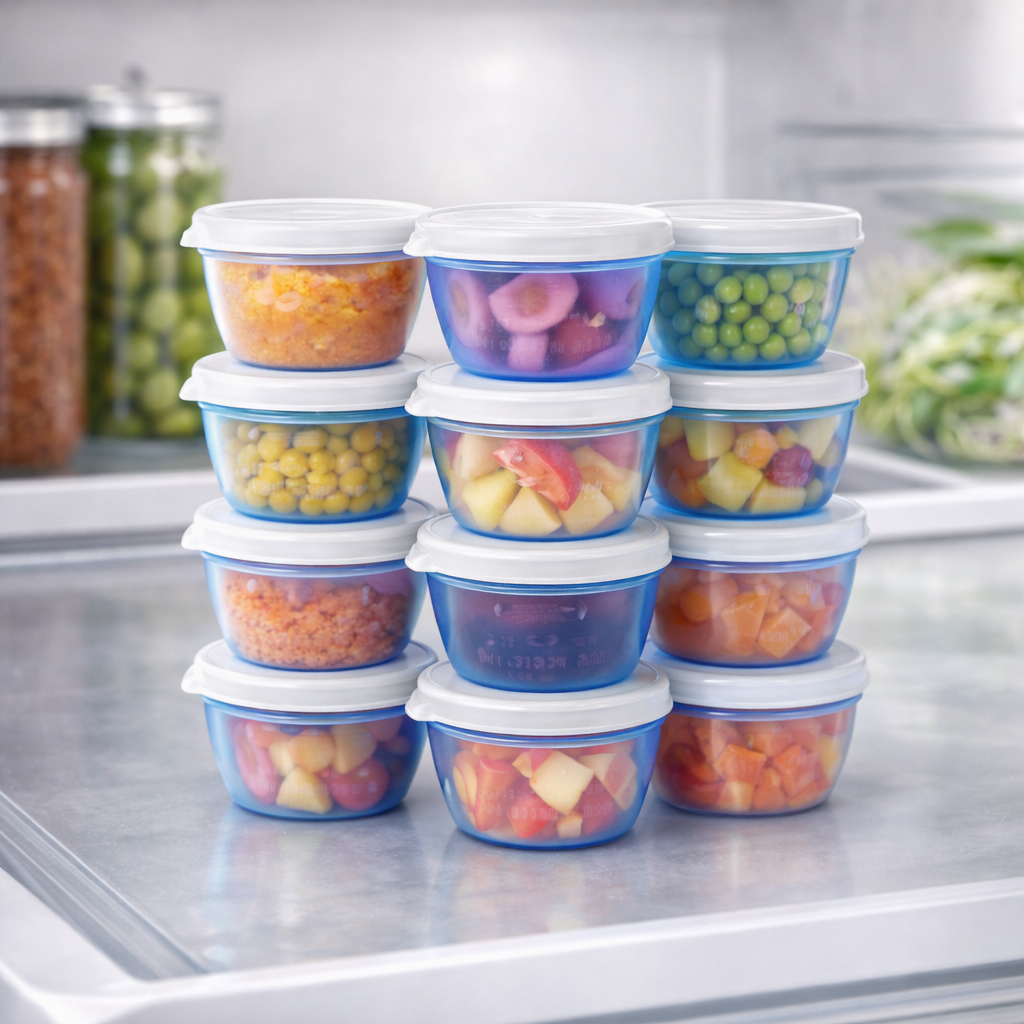 Conjunto 12 Potes Herméticos 130ml Organizador Geladeira Frutas e Lanches BPA Free Redondos