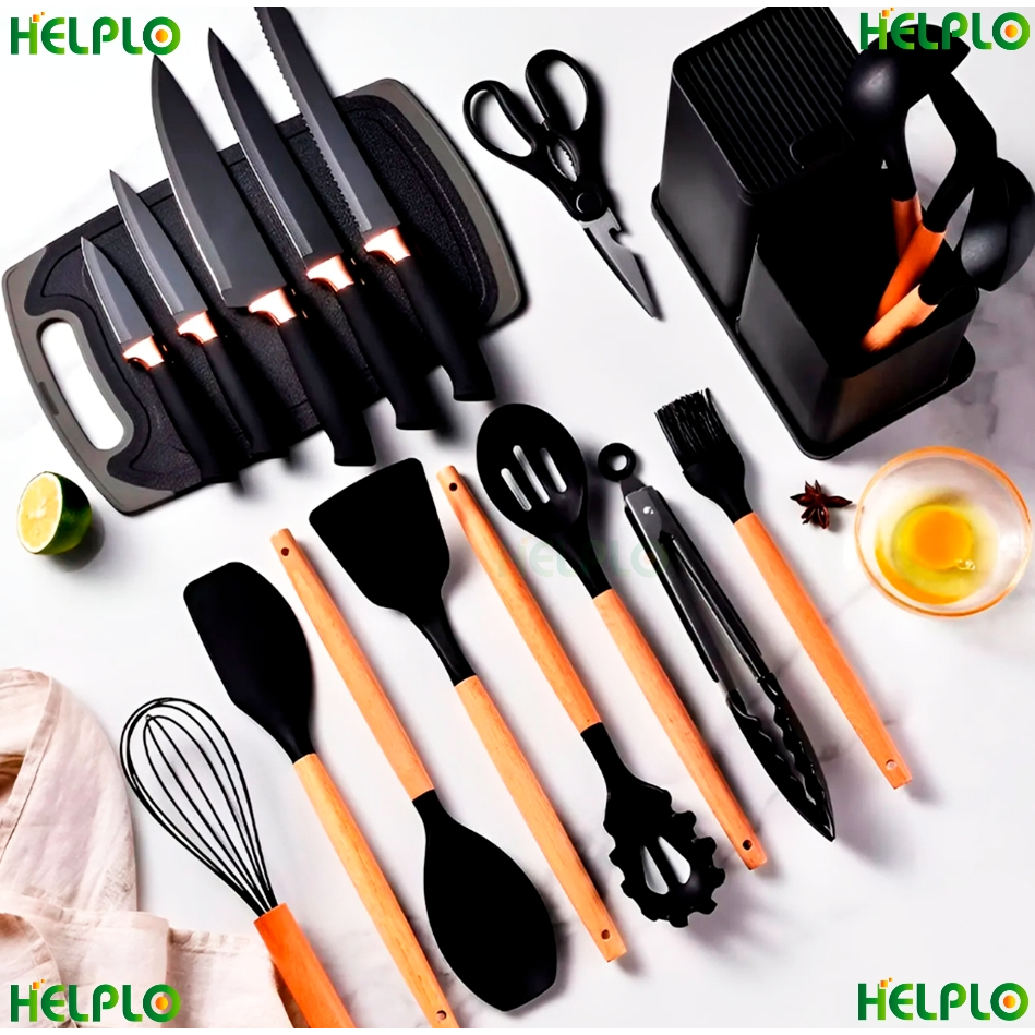 Conjunto 19 Peças Utensílios Cozinha Silicone Preto Helplo