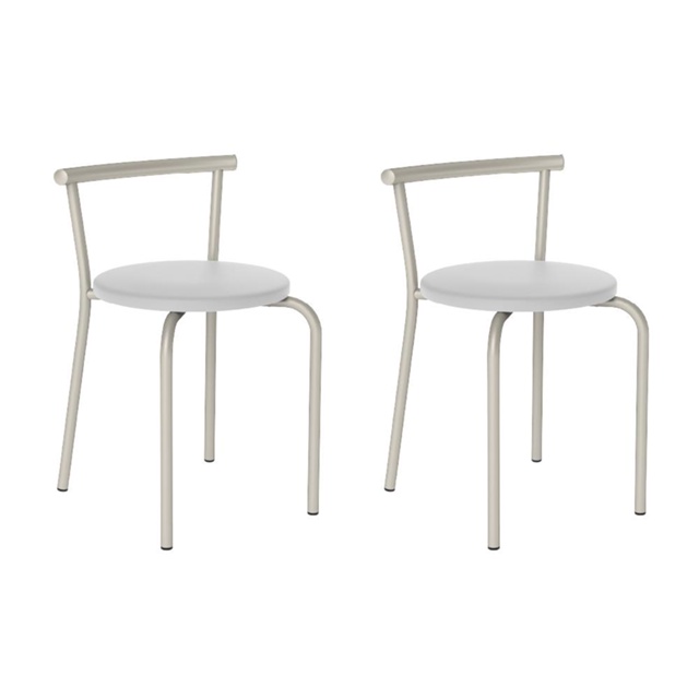 Conjunto 2 Banquetas 105 Tubo Prata Napa Branca Carraro