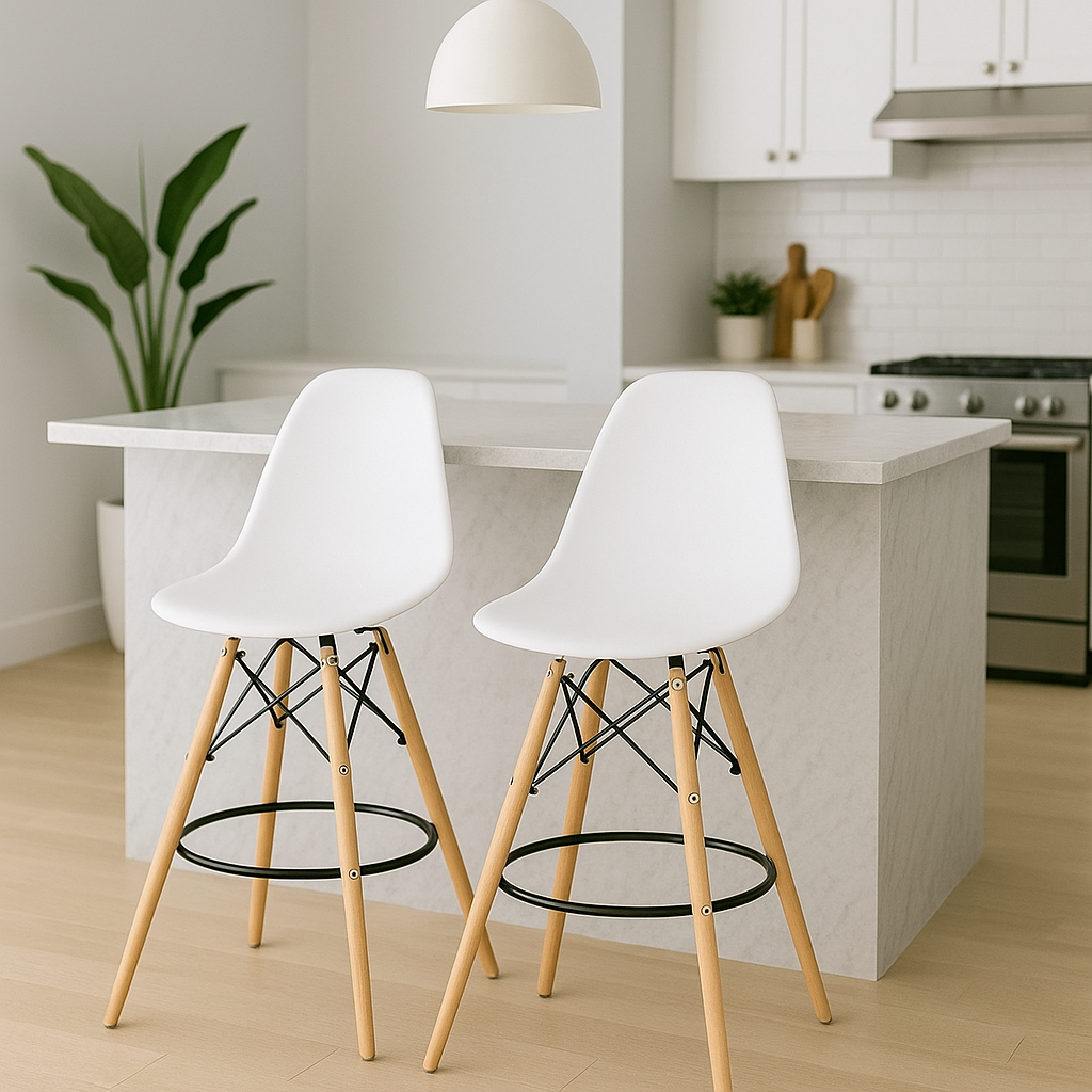 🪑 Conjunto 2 Banquetas Eames com Base de Madeira Natural – Design, Conforto e Sofisticação A Banqueta Eames é uma peça de design ergonômico e contemporâneo, perfeita para quem busca estilo e conforto em um só produto. Com assento em polipropileno de alta resistência e pés em madeira natural com estrutura metálica reforçada, ela une durabilidade e sofisticação, tornando-se uma escolha inteligente para compor cozinhas, áreas gourmet, balcões ou espaços corporativos. Ideal para quem procura uma banqueta alta com design moderno, a Banqueta Eames é destaque entre as melhores opções do mercado em móveis decorativos funcionais. ✨ Conforto, durabilidade e estilo no seu dia a dia ✅ Assento anatômico: moldado para oferecer conforto mesmo por longos períodos. ✅ Alta resistência: o polipropileno garante leveza sem abrir mão da durabilidade. ✅ Base firme: pés em madeira maciça com estrutura metálica que proporciona estabilidade. ✅ Versatilidade de uso: ideal para ambientes residenciais e comerciais. Com design ergonômico e acabamento de alto padrão, essa banqueta oferece muito mais que beleza — ela promove bem-estar, praticidade e elegância em qualquer ambiente. Uma excelente escolha para quem busca banqueta confortável para cozinha americana ou banqueta de designer para decoração contemporânea. 📏 Descrição Técnica Material: Polipropileno (PP) Pés: Madeira e metal Dimensões (LxPxA): 56 x 56 x 106 cm Altura do assento: 70 cm Peso: 5 kg Peso máximo suportado: 110 kg Leve o design atemporal do Conjunto de 2 Banquetas Eames para o seu ambiente e descubra como conforto e estilo podem transformar o dia a dia. Um clássico do design moderno que nunca sai de moda! ✨