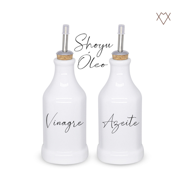 Conjunto 2 Galheteiro Porta Azeite Vinagre Porcelana 270ml Com Adesivos