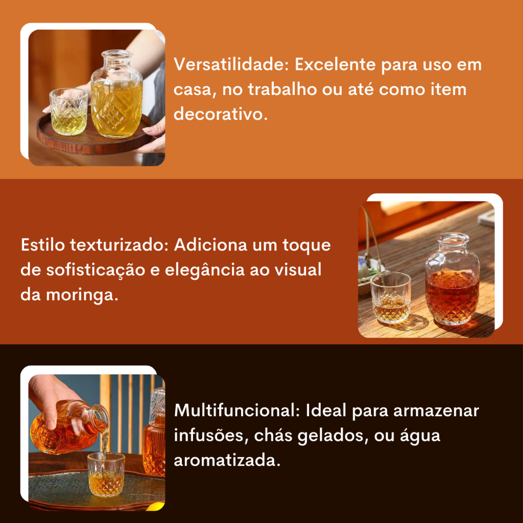 Conjunto 2 Peças Moringa de Vidro Casual 500ml Água Suco Bebida Restaurante Cozinha Jantar