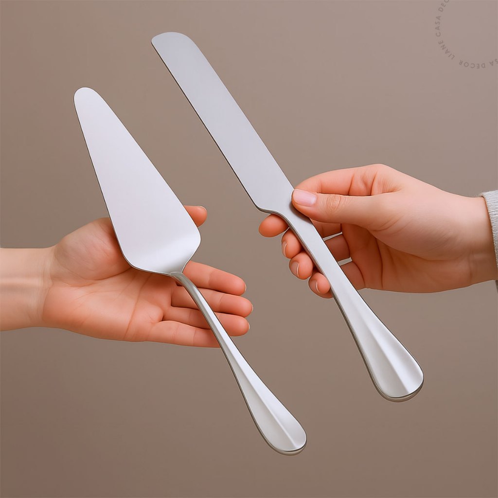 Conjunto 2 Peças Para Bolo De Aço Inox Positano Sobremesa Espátula e Faca