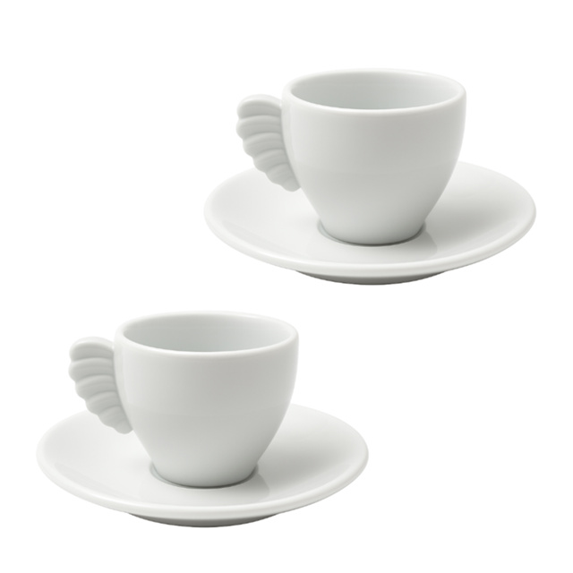Conjunto 2 Xícaras + Pires Porcelana Branca 80ml Design Elegante com Alça Asa Promoção