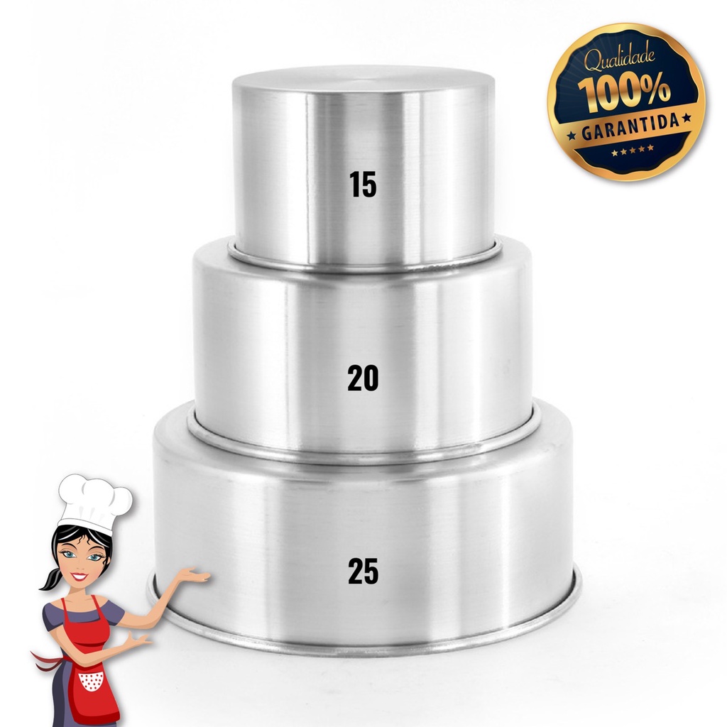 ***ITENS INCLUSOS*** 1 (uma) Forma Bolo Redonda Reta 15 diâmetro x 10 altura cm | L.: 1,7 | Cód: 3086 1 (uma) Forma Bolo Redonda Reta 20 diâmetro x 10 altura cm | L.: 3,1 | Cód: 3087 1 (uma) Forma Bolo Redonda Reta 25diâmetro x 10 altura cm | L.: | Cód: 3088 Material: Alumínio ***USO SEGURO E ADEQUADO*** Ao utilizar utensílios quentes tenha cuidado redobrado. Se necessário, utilize proteção para as mãos e mantenha fora do alcance de crianças. Para sua segurança, ao utilizar utensílios com cabos, mantenha os mesmos sempre voltados para o centro do fogão. Ao utilizar seu utensílio em fogões com grade, mantenha a peça centralizada e alinhe o cabo com a grade, para reduzir o risco de queda. ***IMPORTANTE*** - antes de comprar certifique-se de que seus dados estão atualizados. - serão com esses dados que faremos contato com você para concluir a compra. - tire todas suas dúvidas no campo de Perguntas e Respostas localizado logo abaixo. - NÃO clique em comprar se não tirou todas as suas dúvidas. ***GARANTIA*** Contra defeitos de fabricação. ***ENVIO*** Envio imediato. Temos todos os produtos em estoque a pronta entrega. ***QUAL O PRAZO DE ENTREGA E O VALOR DO FRETE?*** O prazo de entrega varia de acordo com o CEP do destino. Você pode consultar o prazo de entrega e o valor do frete direto no link do produto.