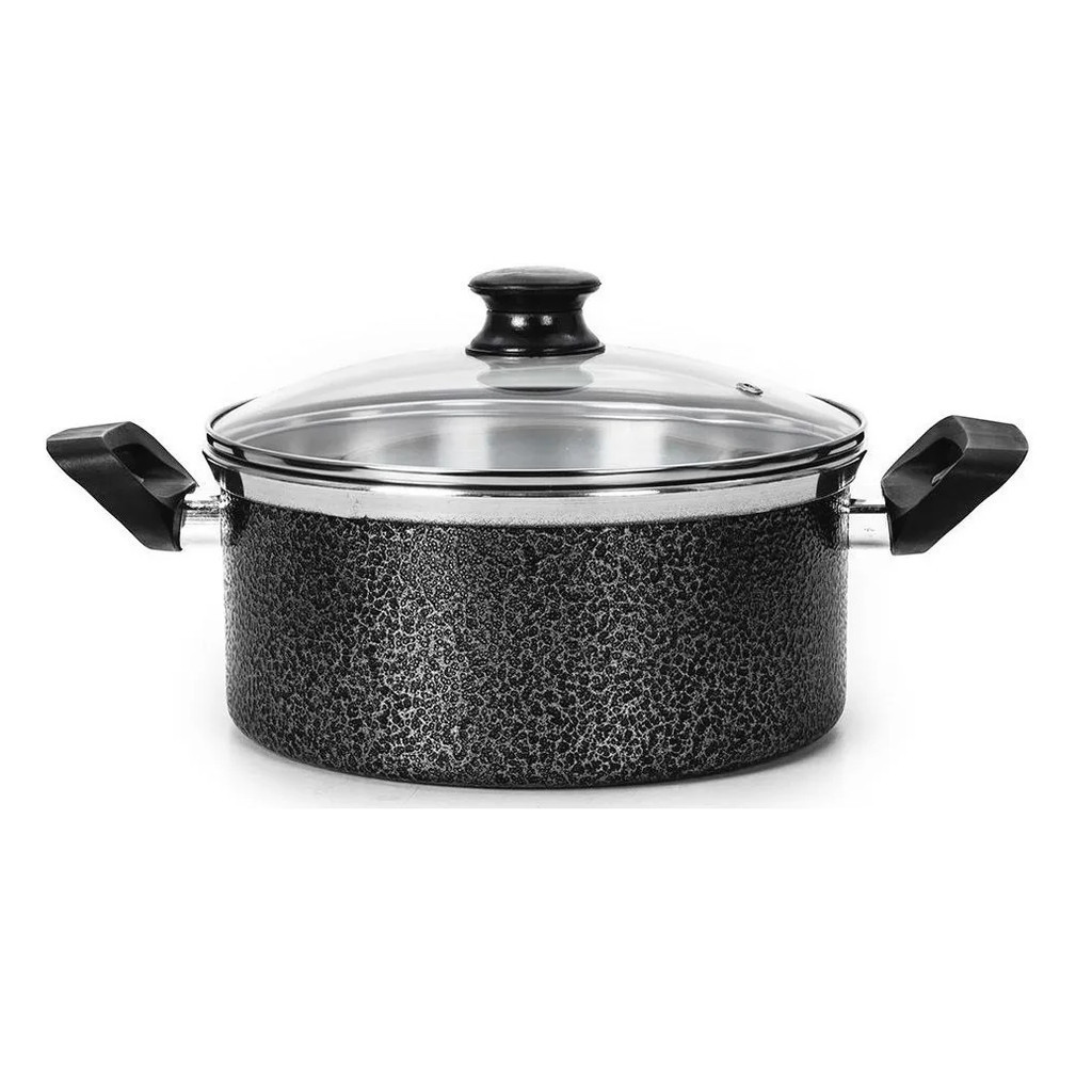 Conjunto 3 Panelas Grande Caçarola Reforçada e com Tampa de Vidro Tamanho N°16/18 e 20 Preto + Espátulas