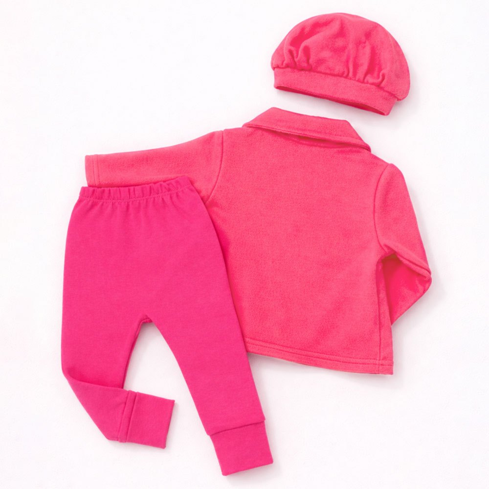 Conjunto 3 pçs com Casaco Bebê Menina Inverno, Calça e Boina Elegante
