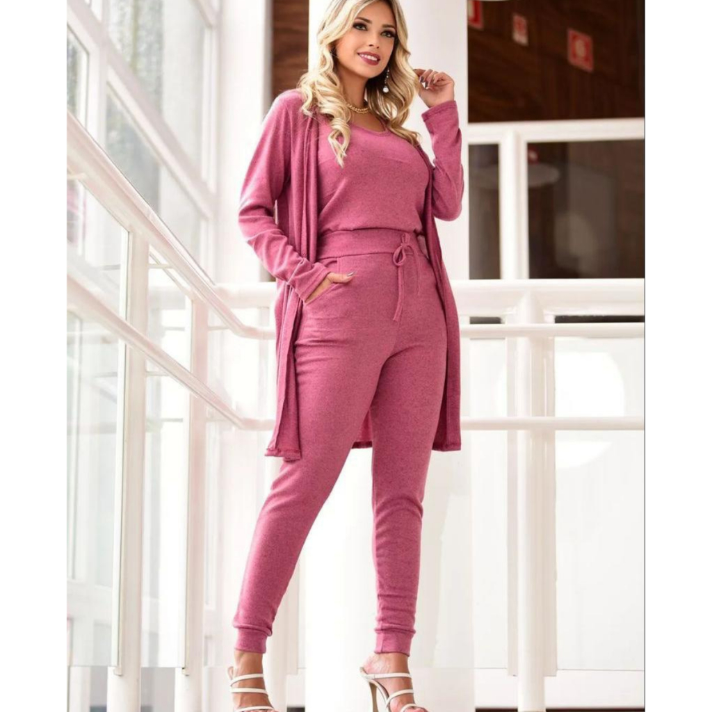 Conjunto 3 Peças Lanzinha - Regata, Quimono e Calça + Camiseta Elegante Este conjunto é perfeito para quem busca estilo e conforto em qualquer ocasião! Composto por três peças versáteis e elegantes, ele é ideal para criar looks modernos e sofisticados, seja no dia a dia ou em eventos mais especiais. Detalhes do Produto: Material: Lanzinha macia e aconchegante, ideal para todas as estações. Peças incluídas: Regata básica, Quimono charmoso, Calça confortável e Camiseta extra. Estilo: Elegante e versátil, perfeito para usar junto ou separadamente. Modelagem: Calça com caimento soltinho e quimono com caimento fluido. Cores: Disponível em diversas opções para combinar com seu estilo. Tamanho: Disponível do P ao GG. Destaques: Conforto e estilo em uma peça única. Ideal para compor looks diferentes. Qualidade premium com ótimo custo-benefício. Cuidados com o Produto: Lavagem à mão ou à máquina em ciclo suave. Não use alvejante para preservar o cor e o tecido. Adicione este conjunto ao seu guarda-roupa e surpreenda-se com as características e elegância que ele oferece!