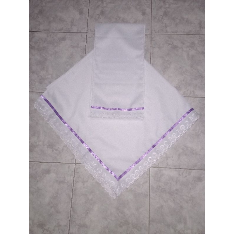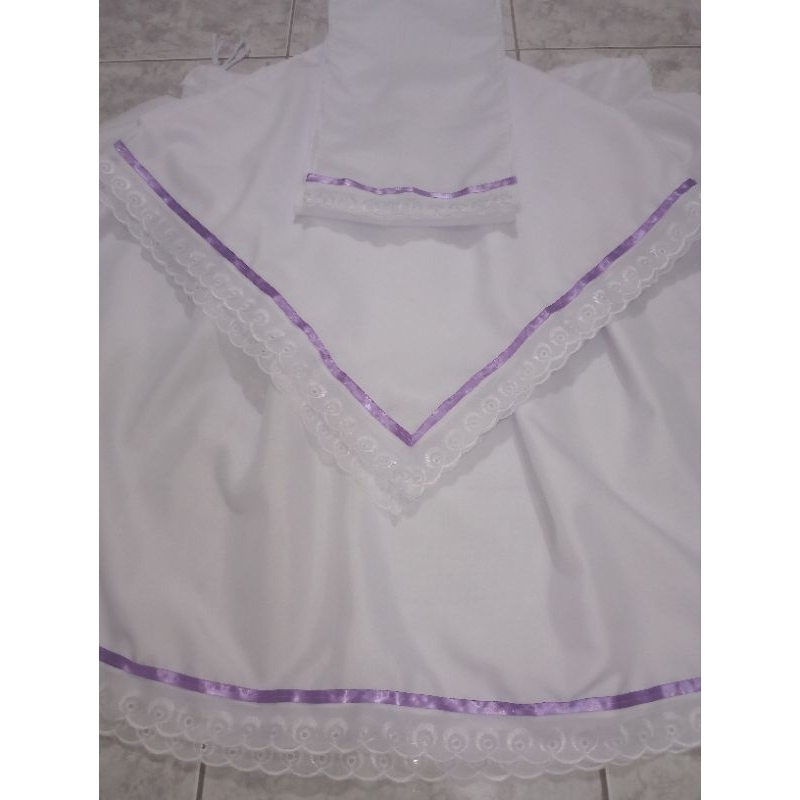 saia Oxford 3 metros pano da costa 2x0,60 pano de cabeça 2x0,30 ( oja) acabamento bordado inglês branco fita lilás