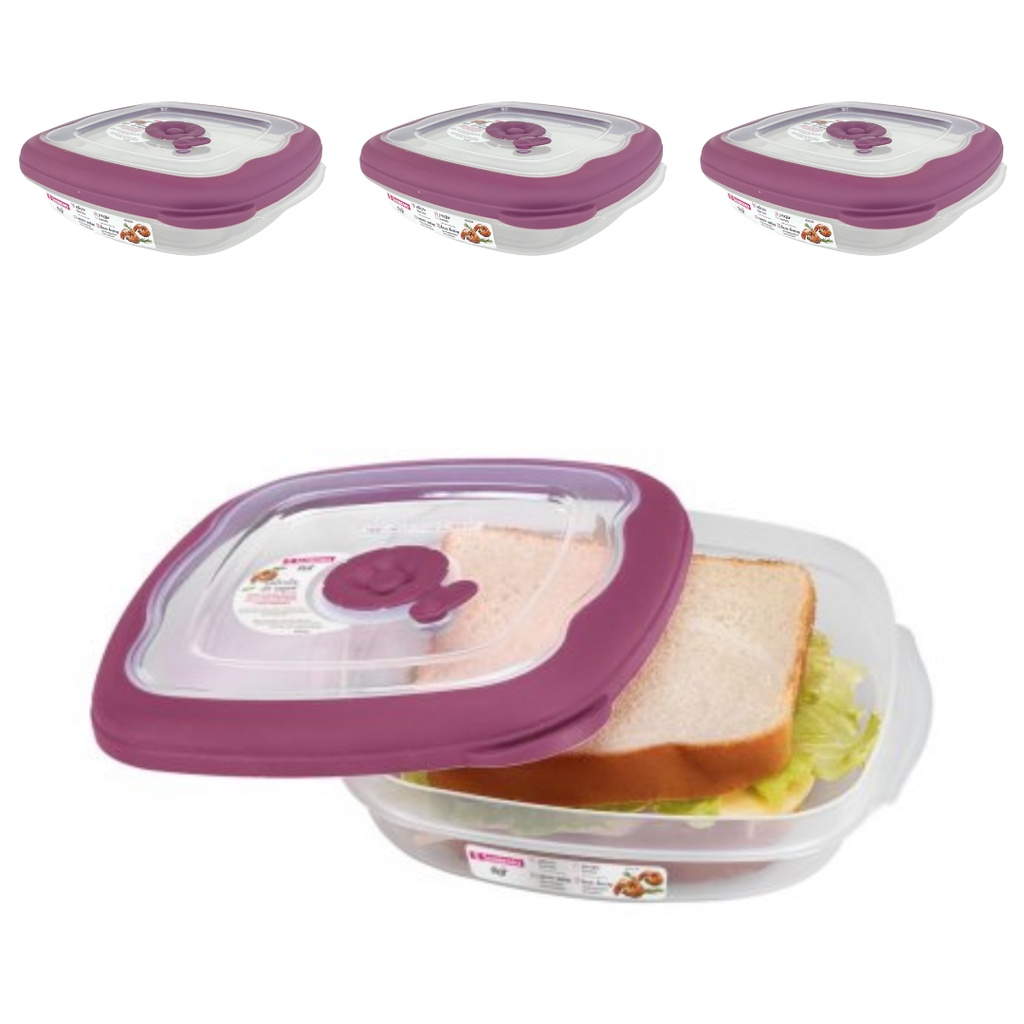 Conjunto 3 Potes Para Sanduiche Lanche Hermético Sanremo Roxo