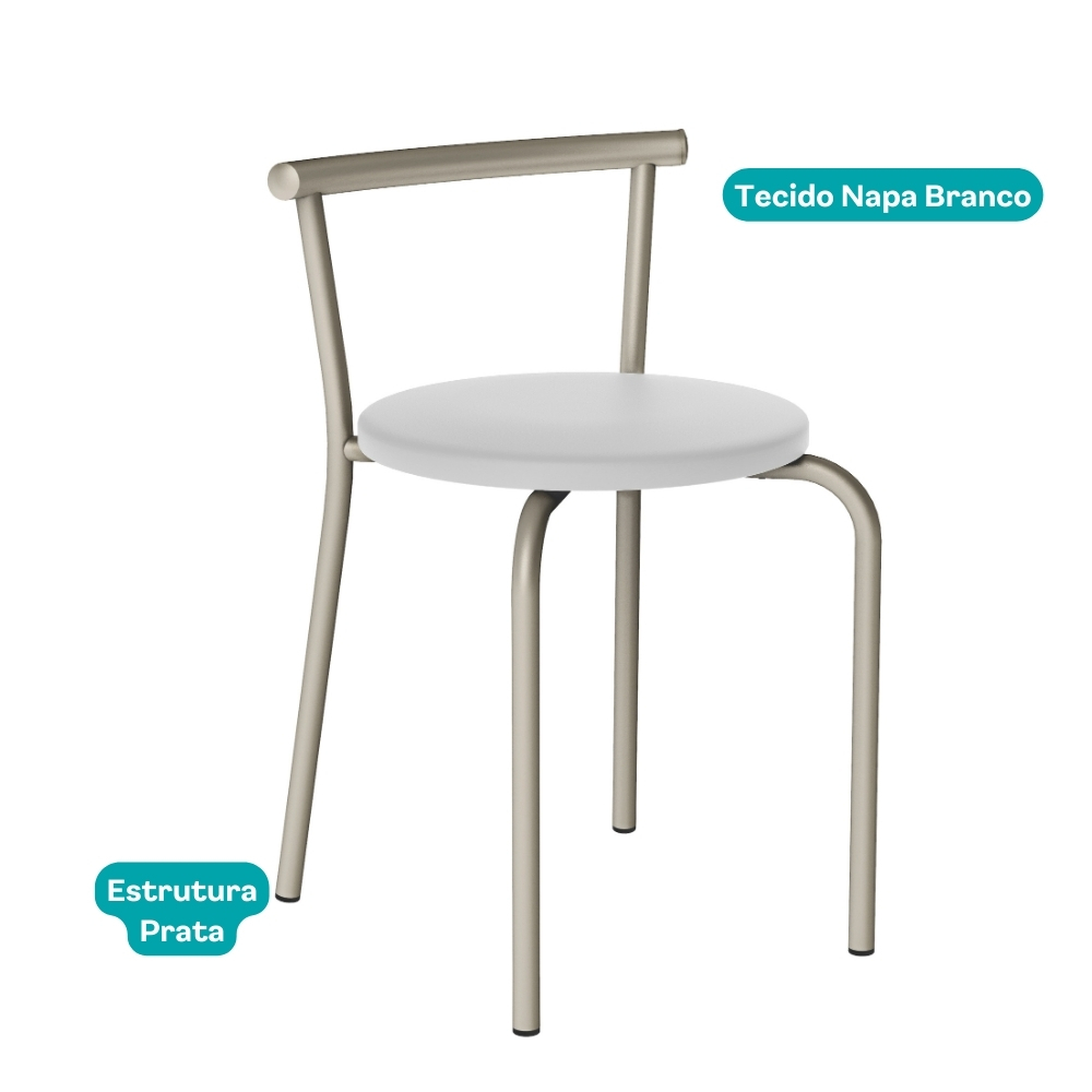 Conjunto 4 Banquetas Tubo Prata Napa Branca 105 Carraro