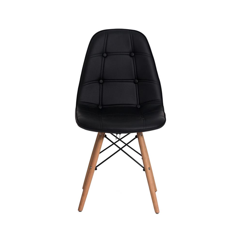 Conjunto 4 Cadeiras Estofadas Para Mesa De Jantar Charles Eames Eiffel Botone Preta Base Madeira