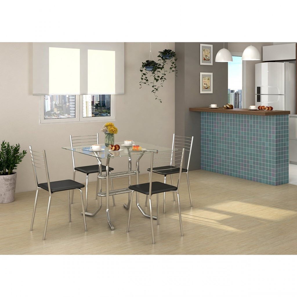 A Cadeira Flex é uma peça pratica, usada em ambientes compactos e de grande circulação. Ela pode compor ambientes residenciais ou comerciais, de acordo com a necessidade. Seu design clean e seu acabamento cromado dão mais charme a peça. O Kit pode ser utilizado em diversos modelos de mesas. Peso (kg): 4.85 Dobrável: Não Garantia: 06 Meses Altura (cm): 82 Giratória: Sim Acabamento: Cromado Largura (cm): 37 Possui Rodízio: Não Suporta Até (kg): 120 Profundidade (cm): 47 Tipo de Assento: Fixo Tipo de Encosto: Fixo Escala de Brilho: Brilhante Material da Base: Aço Origem do Produto: Nacional Ambiente Principal: Cozinha Material Principal: Aço Almofada do Assento: Fixa Quantidade de Itens: 4 Estrutura do Assento: MDF Estrutura do Encosto: Aramado Enchimento do Assento: Espuma D-20 Material da Estrutura: Aço Acabamento da Estrutura: Cromado Revestimento do Assento: Corino Possui Apoio para Braços: Não Possui Apoio para os Pés: Não Altura do Assento até o Chão: 44 Marca: Compoarte Cor: Cromado Cor do Produto: Cromado Itens Inclusos: 4 Cadeiras Cor Predominante: Prata Quantidade do Produto: 4