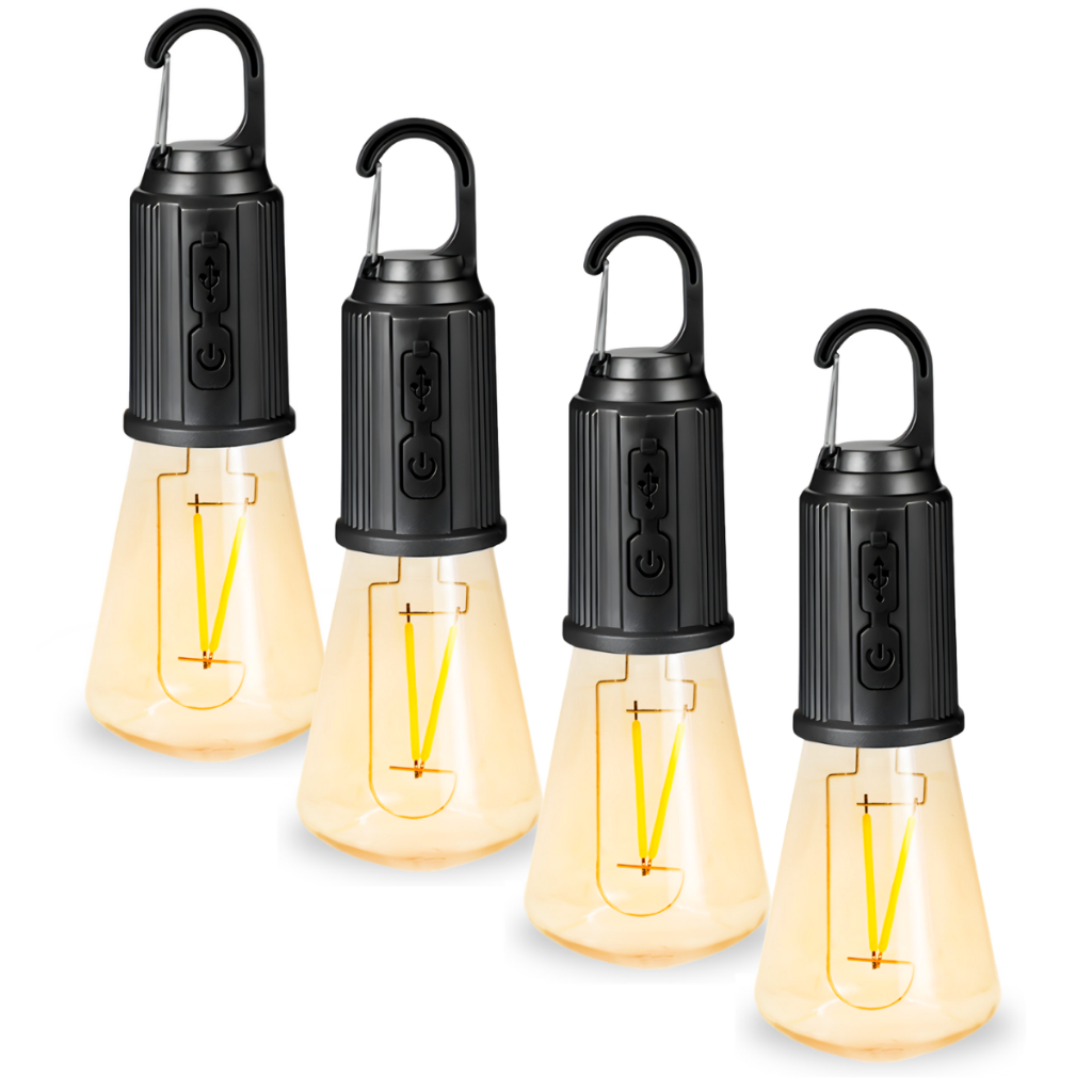 Conjunto 4 Lâmpadas Recarregável Para Barraca De Acampamento E Pesca