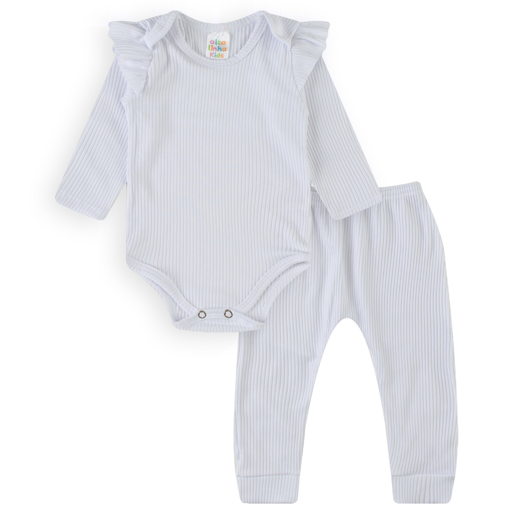Conjunto 4 peças Menina 2 Body manga longa com Babado 2 calça/mijão