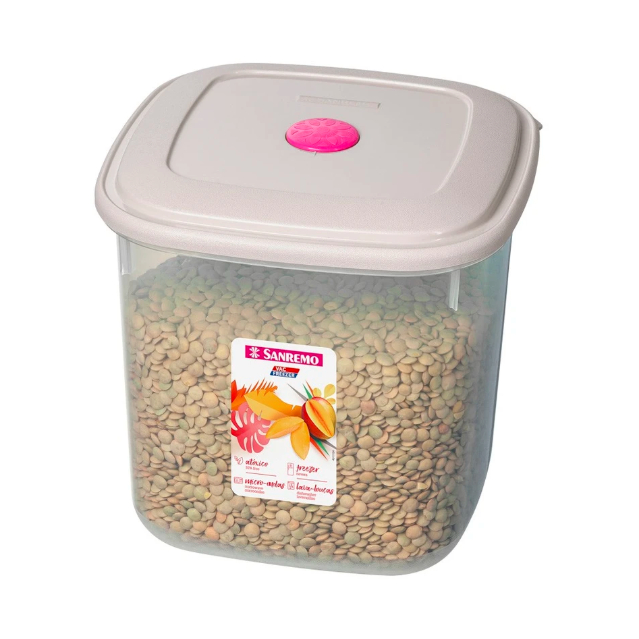 CONJUNTO 4 POTES QUADRADOS PLÁSTICO SANREMO Fechamento hermético, pode ser usado no freezer e lava-louças, com tampa reversível para ir ao micro-ondas. Pegas laterais para facilitar o manuseio. Conjunto composto por: 1 - Pote Capacidade: 1,050 Litros Dimensões: A 12,7 x L 12,0 x C 12,0Cm Ref: 470 1 - Pote Capacidade: 1,700 Litros Dimensões: A 14,2 x L 14,2 x C 14,2Cm Ref: 475 1 - Pote Capacidade: 3,280 Litros Dimensões: A 17,4 x L 17,4 x C 17,4Cm Ref: 480 1 - Pote Capacidade: 5,100 Litros Dimensões: A 20,3 x L 19,4 x C 19,4Cm Ref: 485