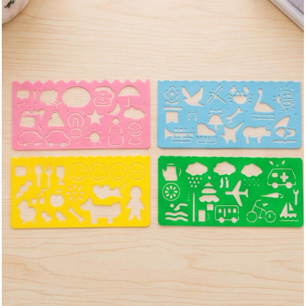 conjunto 4 réguas estêncil desenho infantil figuras criativas papéis