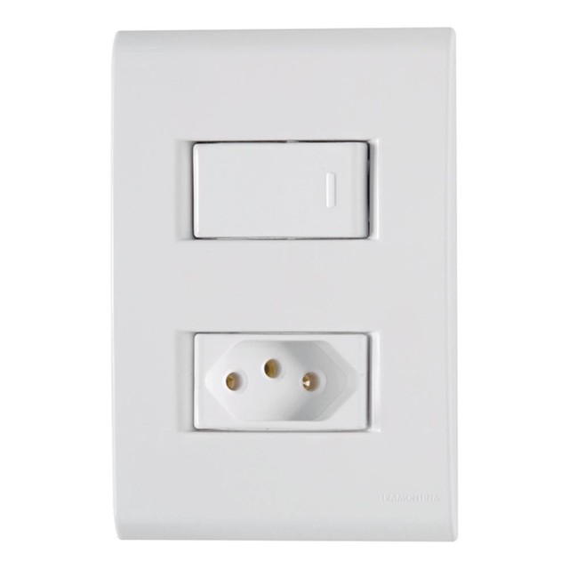 Conjunto 4 x 2 Tramontina com Interruptor Simples e Tomada 2 Pinos + Terra 10A 250v Branco - 57170/264