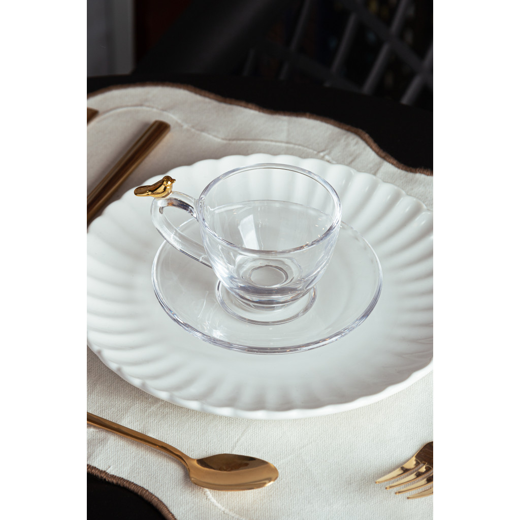 Conjunto 4 Xícaras de Café com Pires Golden Bird 80ml Cristal Ecológico - Wolff