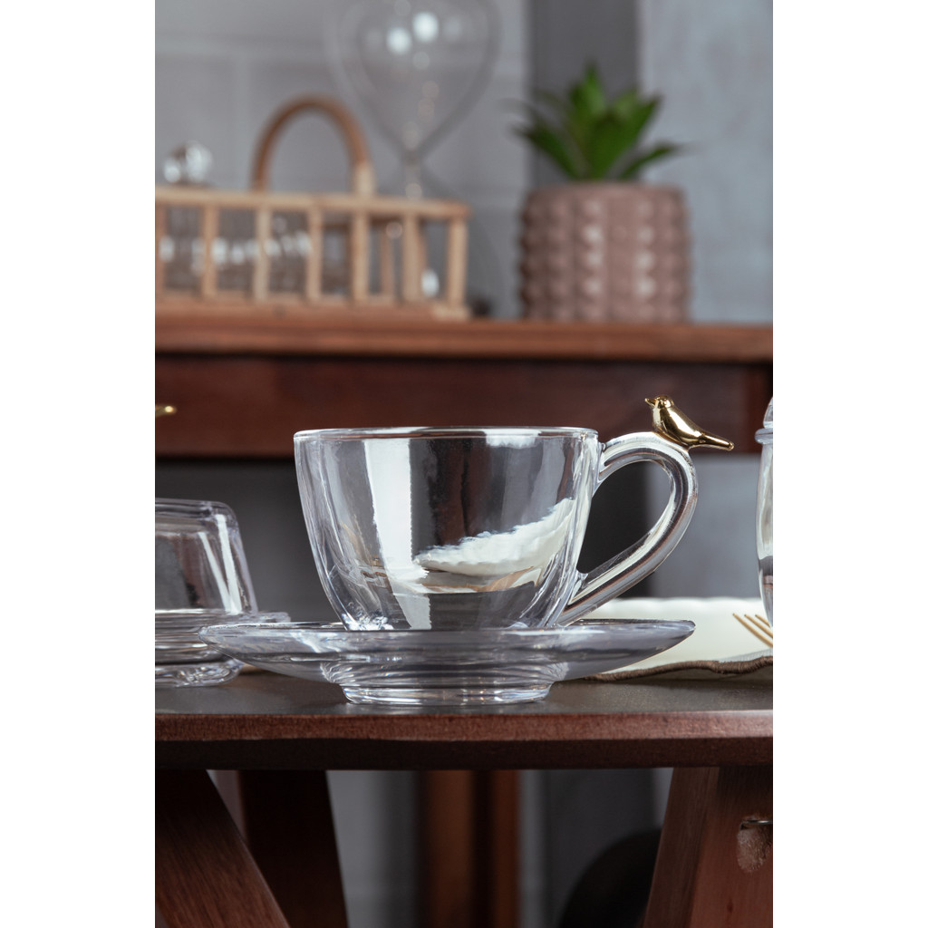 Conjunto 4 Xícaras de Chá com Pires Golden Bird 180ml Cristal Ecológico - Wolff