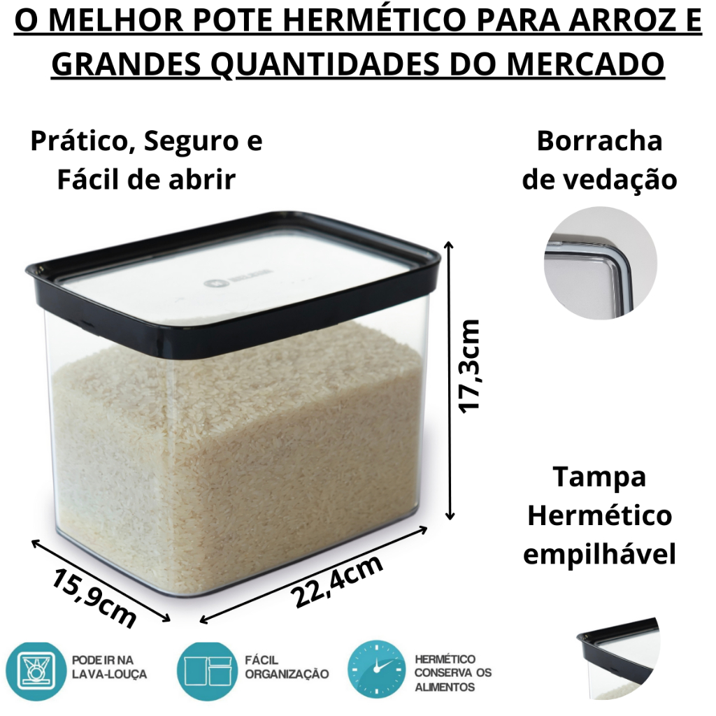 Conjunto 5 Potes Luxo Herméticos Anti Impacto para arroz, feijão, macarrão e utilidades domésticas