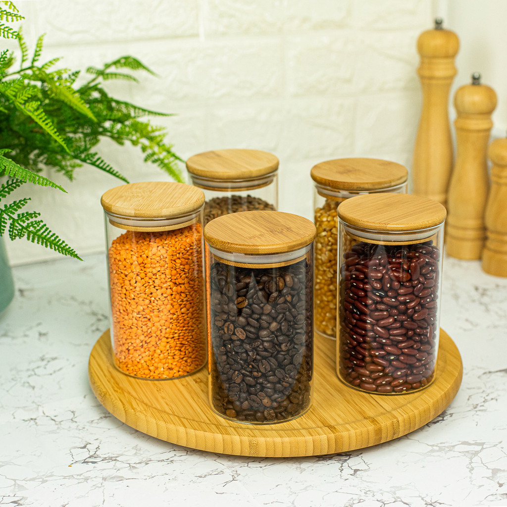 Conjunto 5 Potes Vidro Herméticos C/ Tampa de Bambu - Oikos