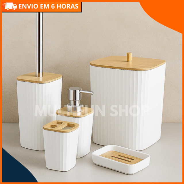 | Conjunto 6 Peças de Banheiro Moderno com Tampa de Bambu – Organizad... este produto | R$ 79,70 | 52% | 5.0/5 | 9 |