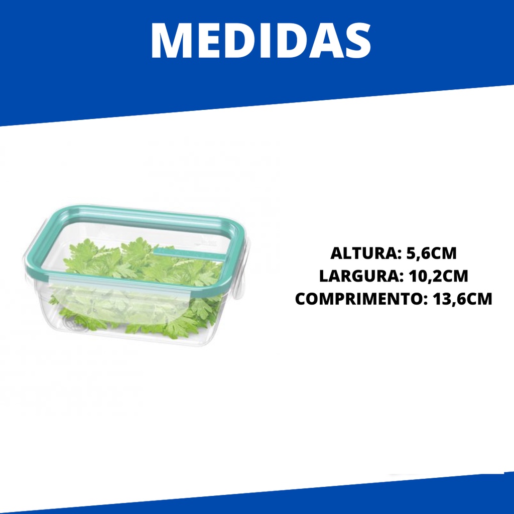 Com um design funcional e elegante, a nova linha de potes Freshy da Sanremo vêm com travas resistentes e borracha integrada que permite melhor vedação e conservação dos alimentos. Seu modelo é super funcional permitindo empilhamento seguro e organizado. Ideal para uma rotina mais leve e prática. Feito com matéria prima virgem, é atóxico, livre de BPA, pode ir ao micro-ondas, freezer e lava louças. Segurança para você e sua família: material livre de BPA, material não tóxico. Medidas: Altura: 5,6cm Largura: 10,2cm Comprimento: 13cm Contém: 6 unidades DÚVIDAS FREQUENTES: 1 - Os produtos são novos? R: Todos os produtos são novos e com garantia. 2 - A mercadoria está disponível à pronta entrega? R: Todas as mercadorias são para pronta entrega. 3- Vocês fazem entregas para todo o país? R: Sim, através dos correios e transportadoras.