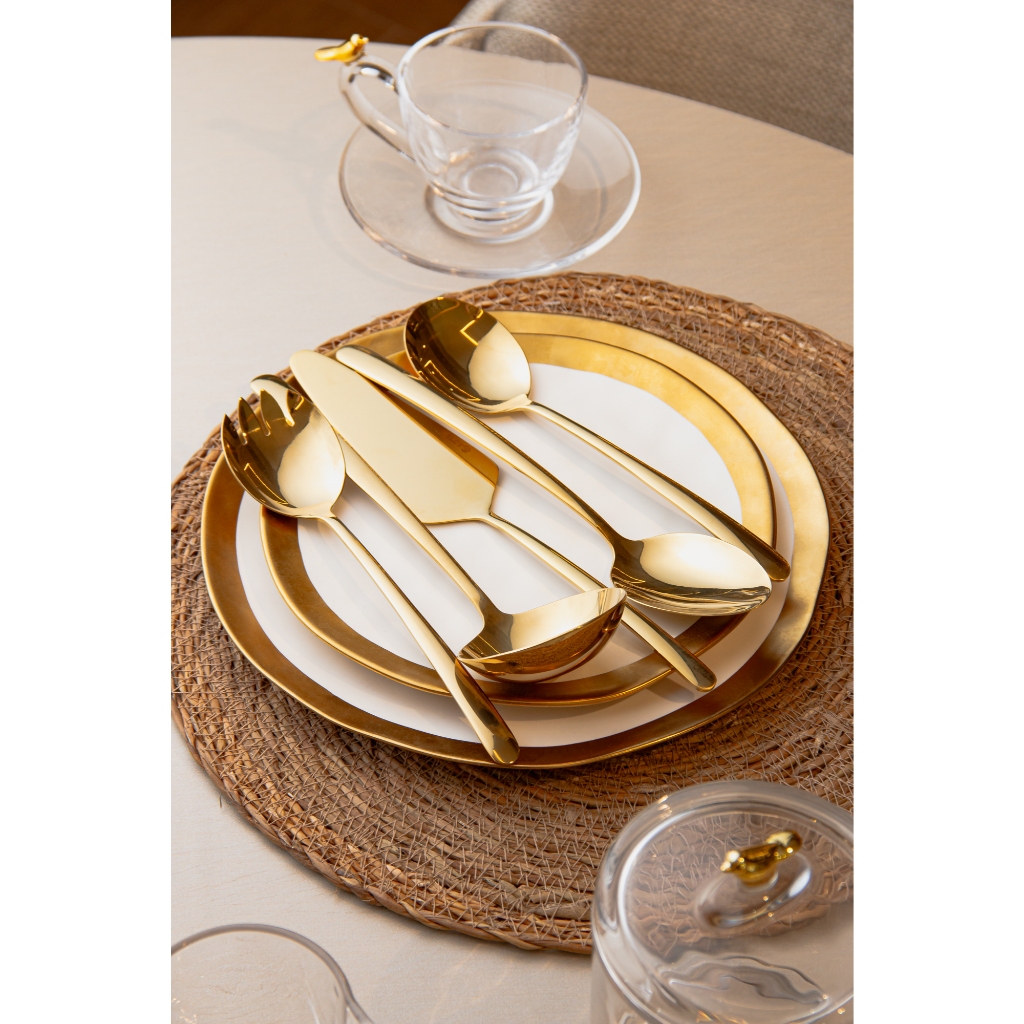 Conjunto 7 Peças Espátula Bolo e 6 Garfos para Sobremesa Firenze ou Viena Aço Inox/Dourado Wolff