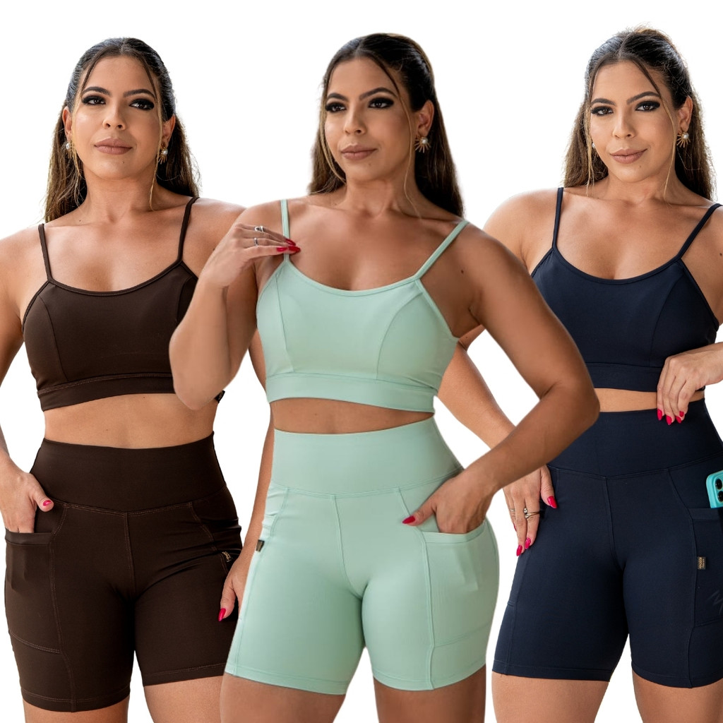 Conjunto Academia Feminino Alta Compressão Short com Bolso + Top Sustentação
