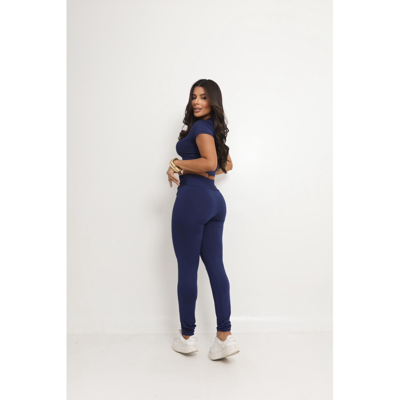 CONJUNTO ACADEMIA FIT FITNESS LEGGING CROPPED MANGA CURTA FEMININO BÁSICO SUPLEX GROSSO ZERO TRANSPARÊNCIA TOP