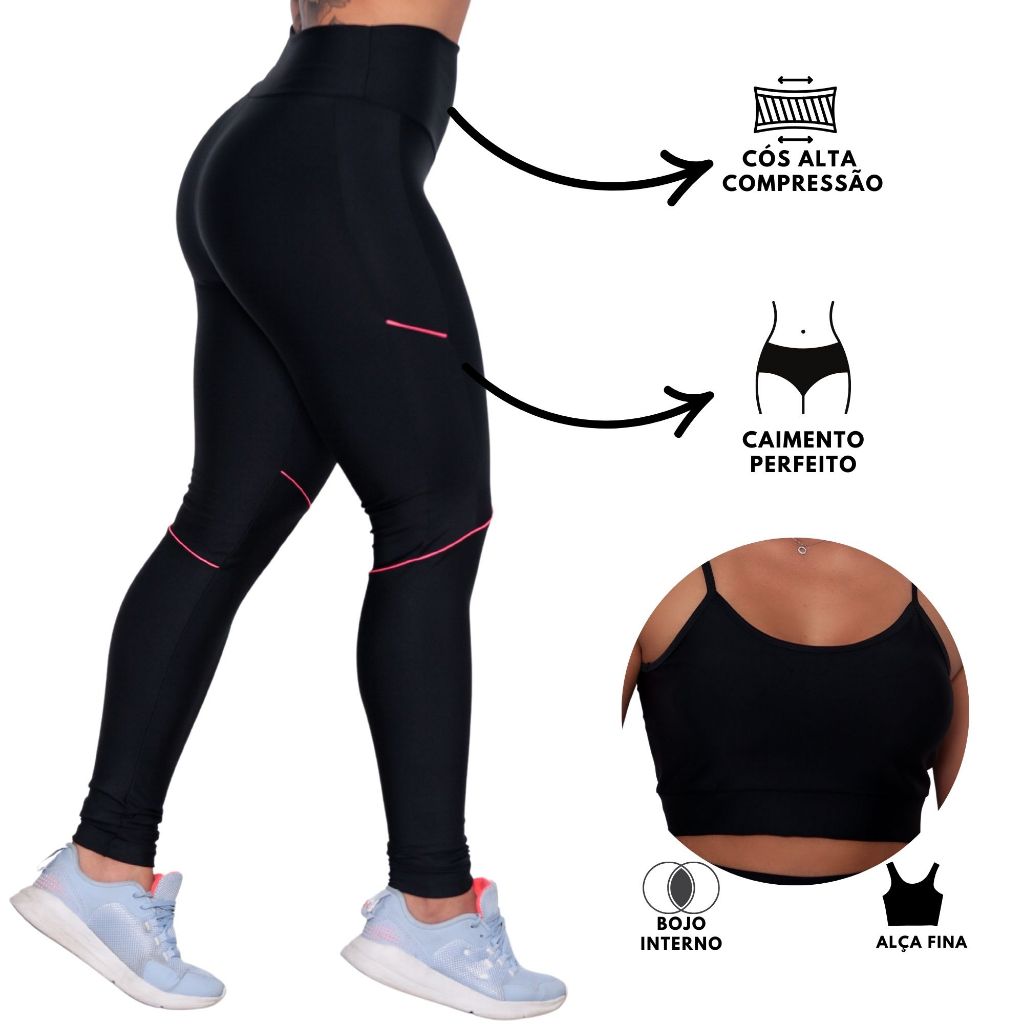 Conjunto academia top e calça leg feminino fitness luxo suplex