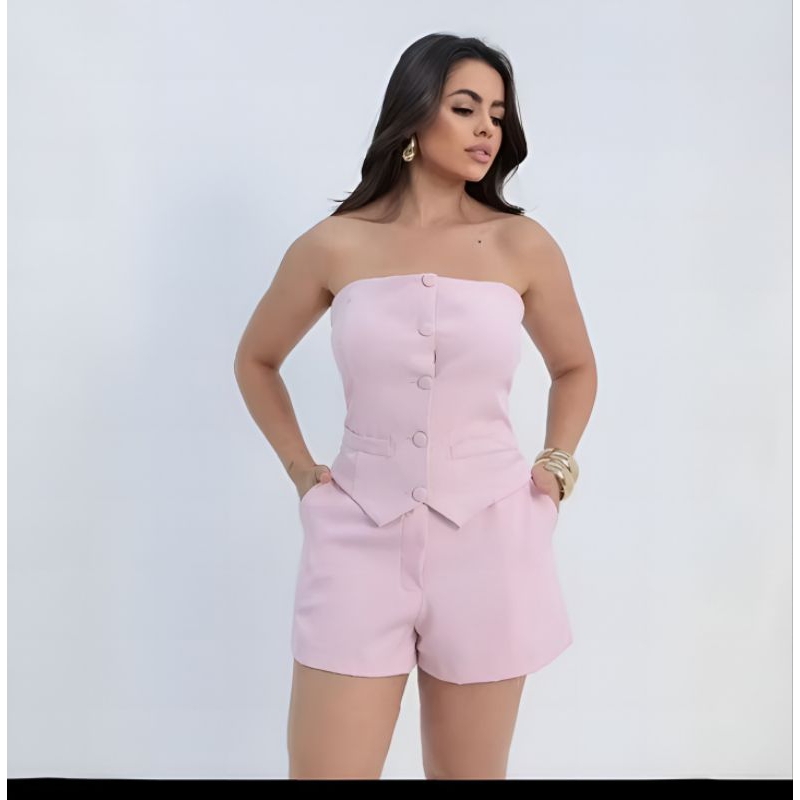 conjunto alfaiataria colete Tamara short ocasião casuais