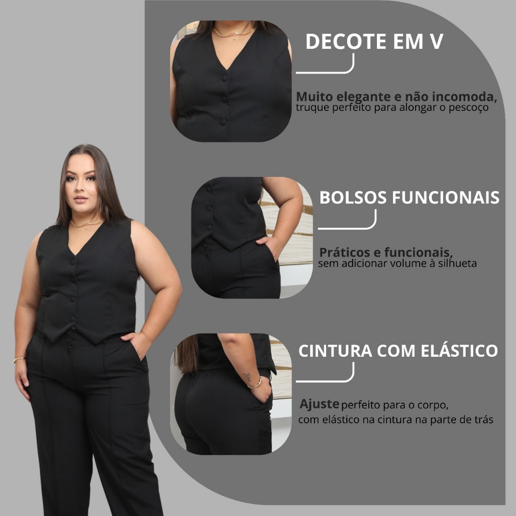 Conjunto Alfaiataria Feminino Clássico Colete sem Mangas + Calça de Cintura Alta