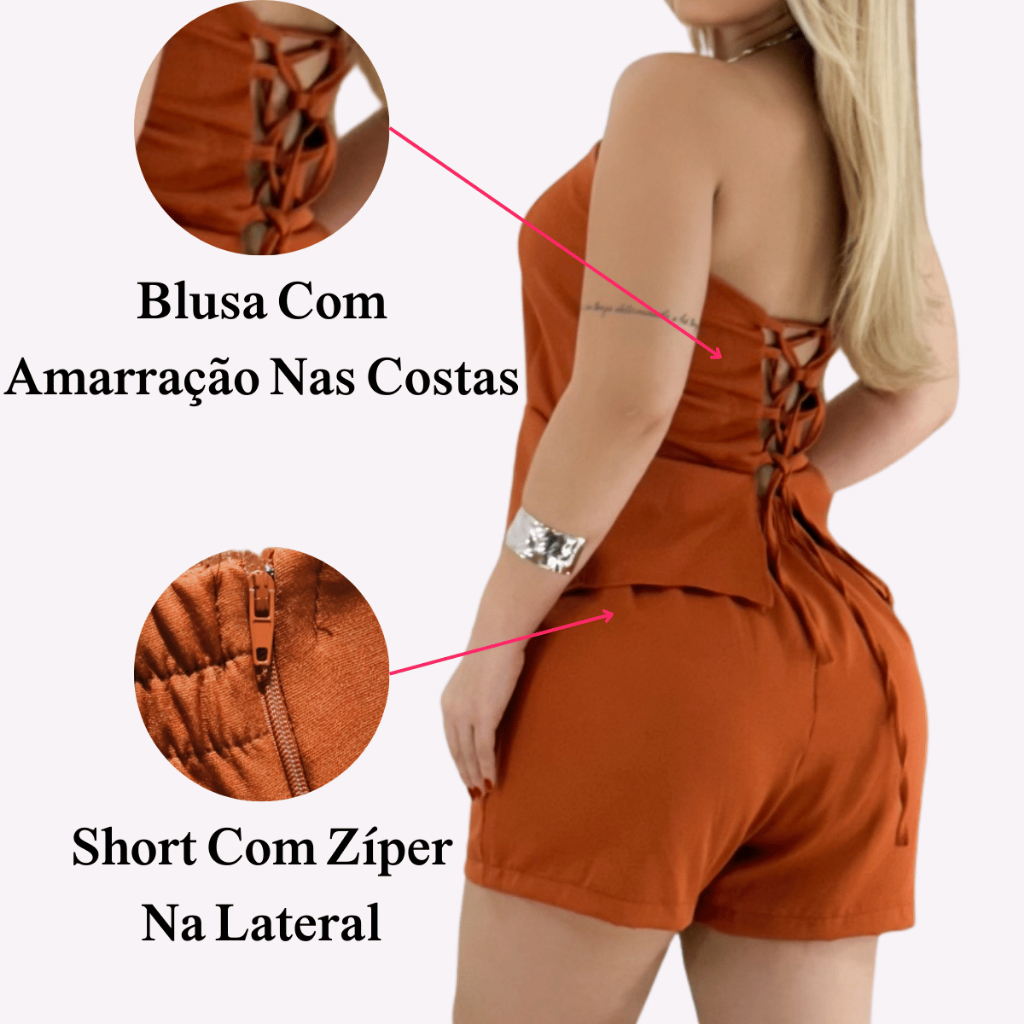 Descrição do Produto: Conjunto Feminino Tomara Que Caia Ajustável e Shorts Alfaiataria Renove seu estilo com o Conjunto Feminino Tomara Que Caia Ajustável e Shorts Alfaiataria. Um look moderno, elegante e confortável, perfeito para ocasiões casuais, passeios e encontros especiais. Características: Material: Confeccionado em tecido leve, com caimento estruturado, que garante conforto e durabilidade. Modelagem: Tomara que caia: Design sem mangas, detalhe de botões frontais e amarração nas costas que permite ajuste perfeito ao corpo. Shorts: Modelagem de alfaiataria, cintura alta, zíper na lateral para melhor adaptação e acabamento sofisticado. Detalhes: O tomara que caia possui barra assimétrica que valoriza a silhueta e traz um toque fashion ao visual. Fechamento: Tomara que caia com botões frontais e amarração ajustável nas costas. Shorts com cós estruturado na frente e zíper na lateral para maior conforto. Tabela de Medidas (em centímetros): Tomara Que Caia P (36-38) – Busto: 70 cm | Comprimento: 60 cm M (40-42) – Busto: 78 cm | Comprimento: 58 cm G (44-46) – Busto: 84 cm | Comprimento: 62 cm Tabela de Medidas (em centímetros): Short P (36-38) – Cintura: 68 cm | Quadril: 76 cm | Comprimento: 42 cm M (40-42) – Cintura: 72 cm | Quadril: 80 cm | Comprimento: 46 cm G (44-46) – Cintura: 80 cm | Quadril: 88 cm | Comprimento: 46 cm Destaques: Estilo Moderno: Tomara que caia estruturado com detalhe ajustável para um caimento perfeito. Conforto Superior: Shorts de alfaiataria com zíper discreto que garante liberdade de movimento. Versatilidade: Combine com salto para um look sofisticado ou tênis para um visual despojado. Praticidade: Fácil de vestir e de cuidar, ideal para o dia a dia. O Conjunto Feminino Tomara Que Caia Ajustável e Shorts Alfaiataria é a escolha perfeita para quem busca estilo, praticidade e elegância em uma só peça.