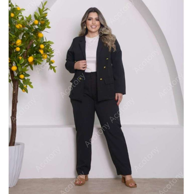 Conjunto Alfaiataria Plus Size GG ao G3 Feminino Casaco + Calça Social Com Botão