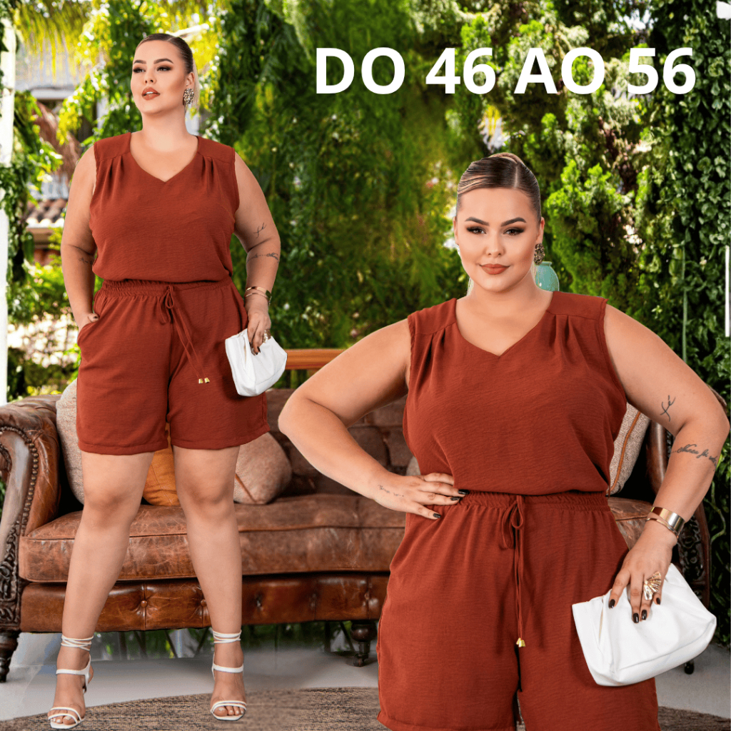 CONJUNTO ALFAIATARIA PLUS SIZE VERSATIL SHORT E BLUSA