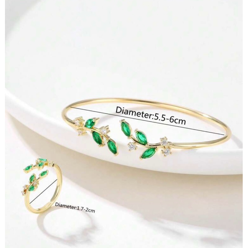 Conjunto Anel e Pulseira e Pulseira Avulsa Folha Zircônia Festa Casamento Formatura Verde Branco Azul Rosa Amarelo