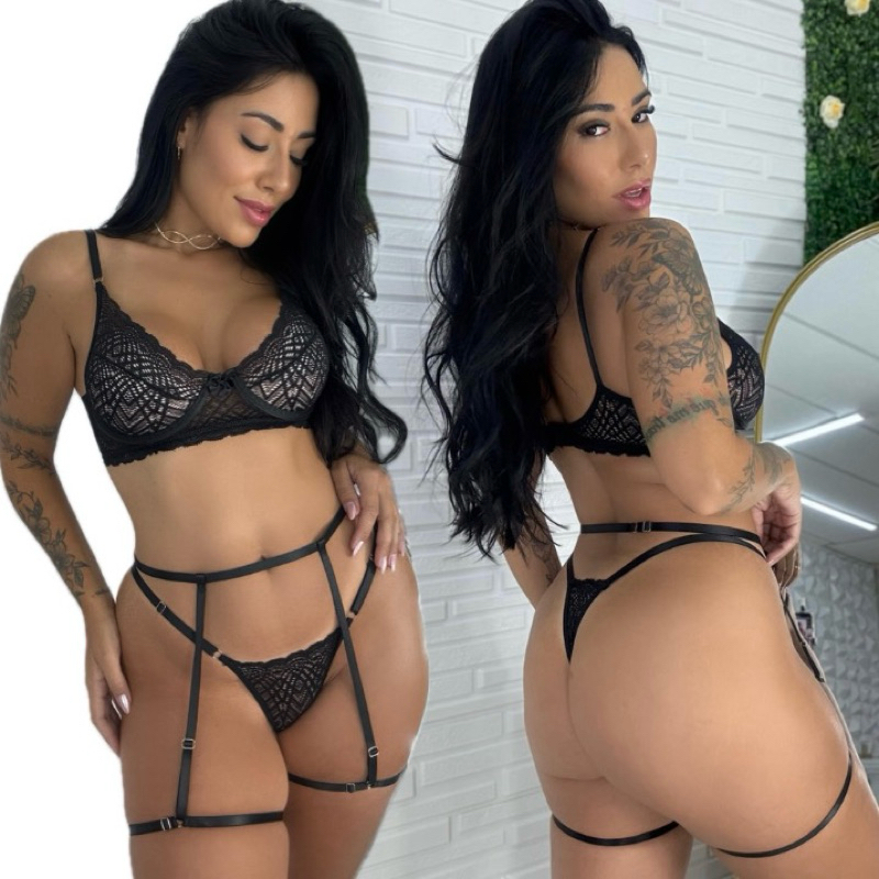 Conjunto 3 peças em Renda com Cinta Liga. Conjunto de lingerie feminina sexy, nas cores Vermelho, Branco, Preto e Rosa com Cinta Liga todo em Renda o Sutiã e a Calcinha promovendo um Romantismo nas peças. Este conjunto exala confiança e sensualidade, apresentando um design provocante que valoriza cada curva do seu corpo. As peças são confeccionadas com renda de qualidade, combinando conforto e estilo em um único conjunto. O sutiã com Aro , realça seu decote dando sustentação de maneira elegante, enquanto a calcinha de renda com regulagem para ajustar ao seu corpo, proporciona um toque final irresistível. Seja para uma noite especial ou para manter um clima de sedução e Romance, este conjunto é a escolha perfeita. Surpreenda e encante com a sensualidade autêntica das nossas peças. Entregamos com discrição e rapidez. Celebre sua feminilidade e poder com nosso conjunto feminino. COMPOSIÇÃO: Tecido: Renda Alça com Regulagem Forro: 100% algodão TAMANHOS: P veste 36 M 38 ao 40 G 40 ao 42 GG 44 ao 46 OBS: A Renda pode sofrer variações de tonalidade e desenho.